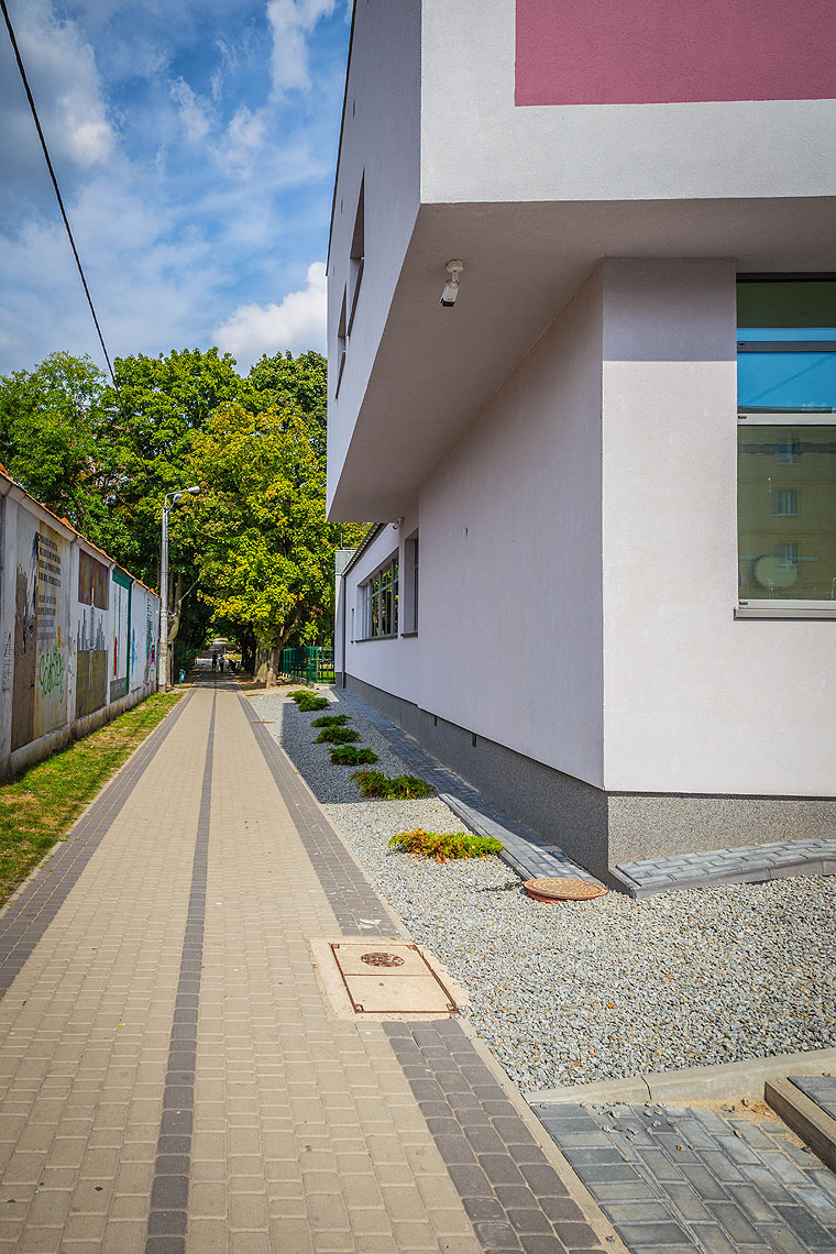 Realizacja obejmowała, gruntowny remont i przebudowę istniejącego budynku ma na celu stworzenie powierzchni biurowo-usługowej. Projekt obejmował także zmianę zagospodarowania terenu.